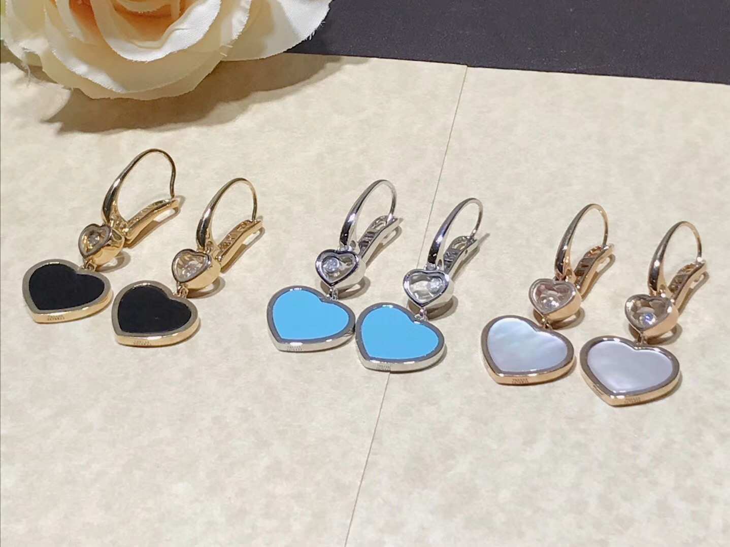18k Gold Chopard Happy Hearts Earrings Gems and Diamond