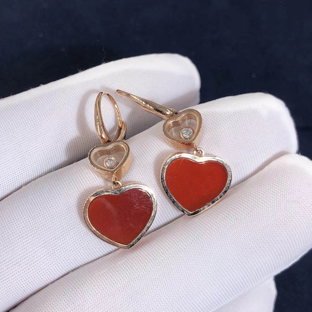 The Happy Hearts line embraces the heart as a symbolic motif of the Happy Diamonds collection, interpreting it with playful creativity. These timeless Chapord pendant earrings in 18-carat gold feature gemstones in the form of elegant hearts suspended from smaller hearts housing one of Chopard's celebrated moving diamonds, in a sparkling celebration of love.