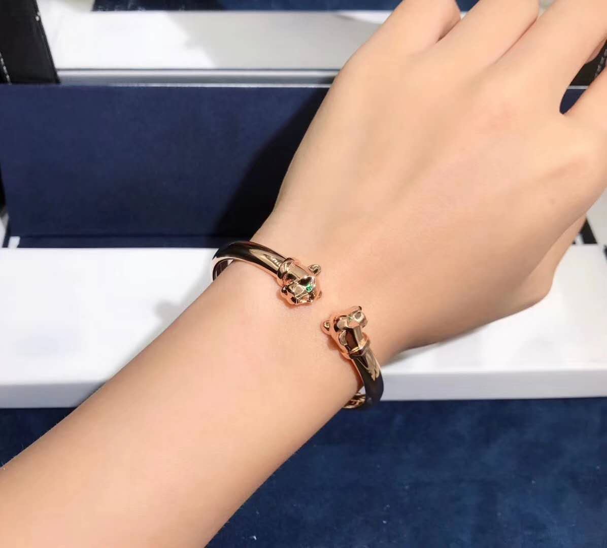 Get your own at an extremely low direct factory selling price. If you are interested in this 18K pink gold Panthère de Cartier bracelet set with tsavorite garnets and onyx, Please contact us via the contact form below: