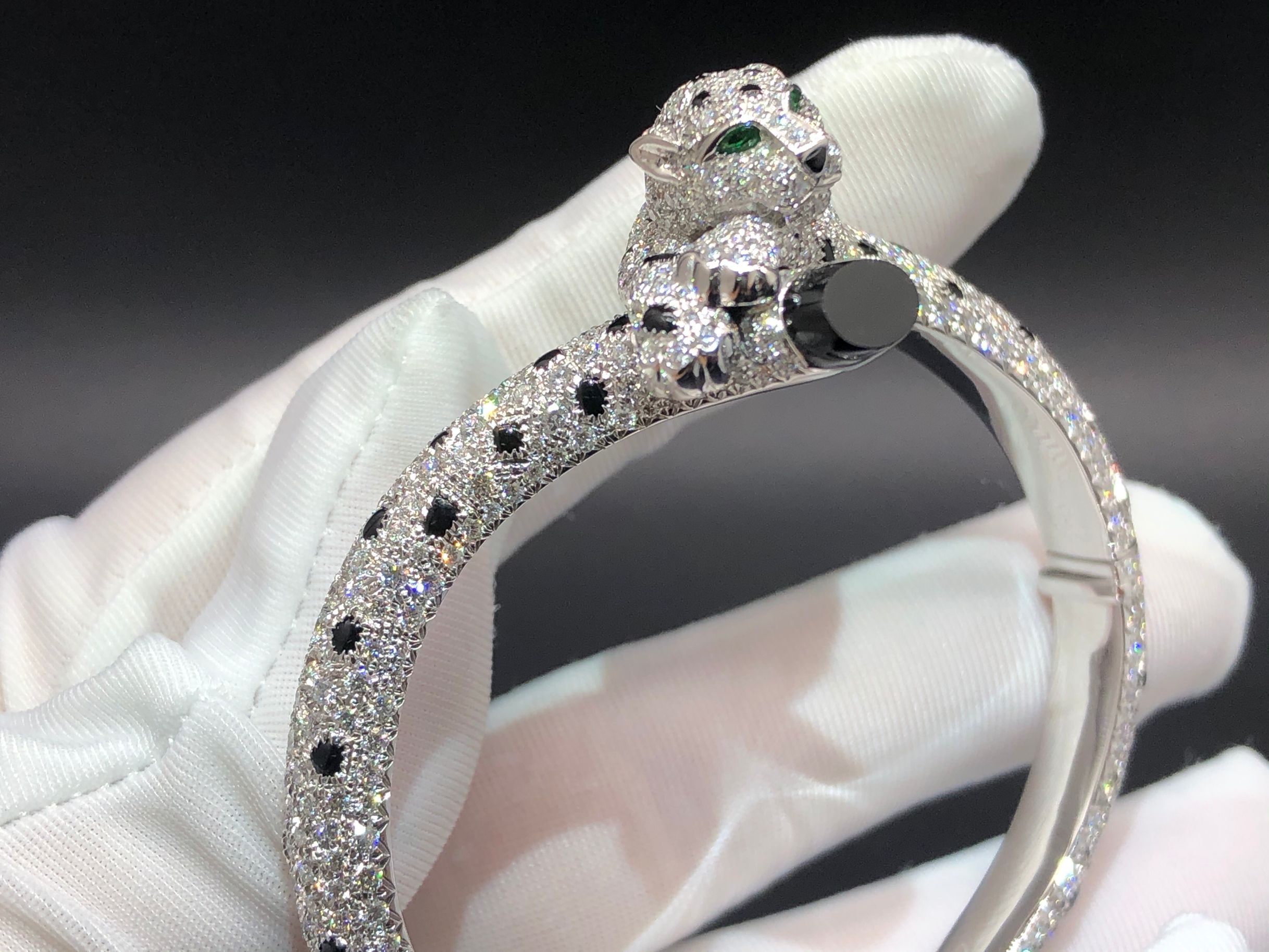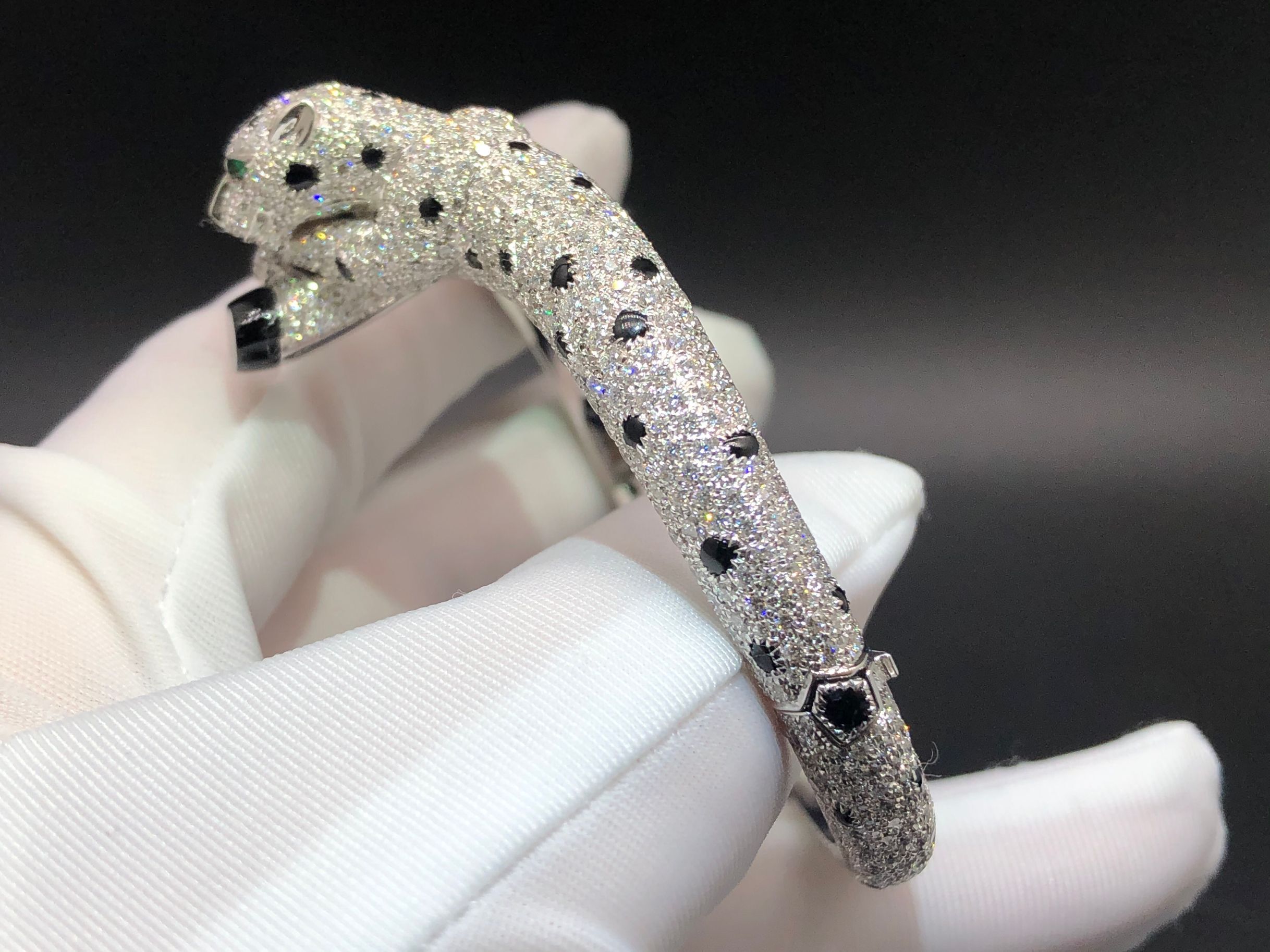 If you are interested in this 18K white gold Panthère de Cartier bracelet pave 833pcs diamonds and onyx, Please contact us via the contact form below or call us via whatsapp.
