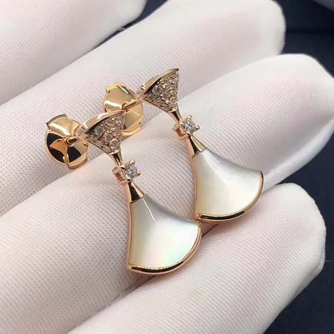 Authentic Bvlgari Divas’ Dream Earrings 18k Rose Gold with White Mother of Pearl and Diamond