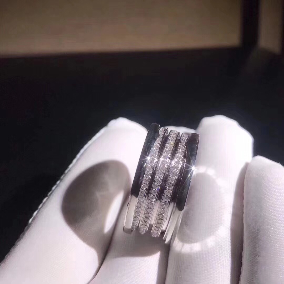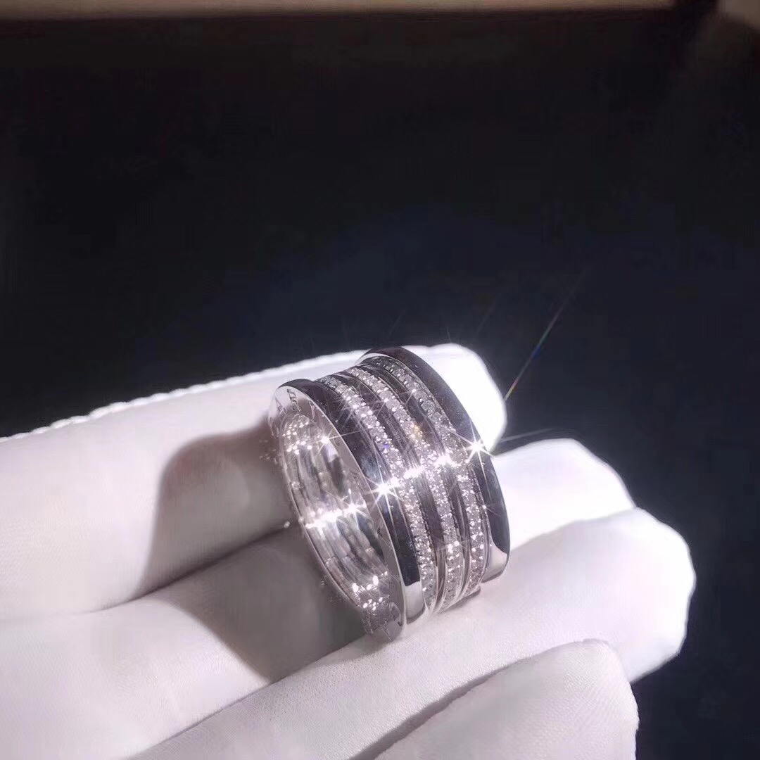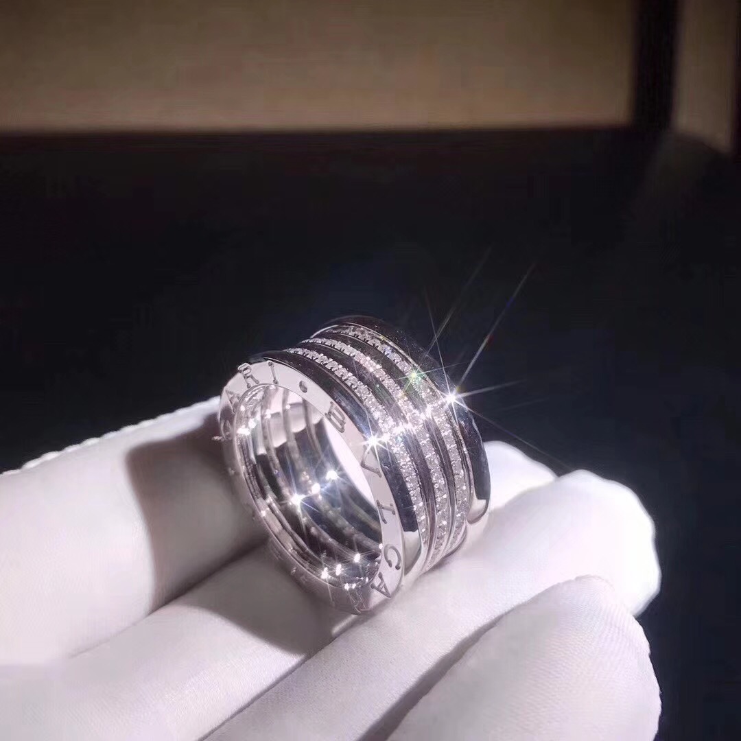 • Bulgari B.zero1 4-band Ring 18k White Gold set with Pavé Diamonds on the Spiral AN850556