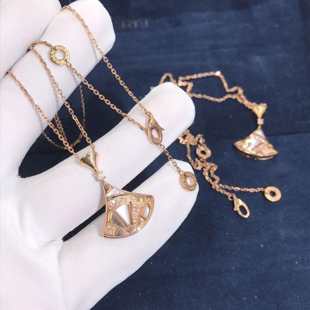 DIVAS ‘DREA Necklace Sparkling rose gold, mother-of-pearl and pavé diamonds are carved in a fascinating mosaic with the iconic fan pattern and inspired by feminine beauty.