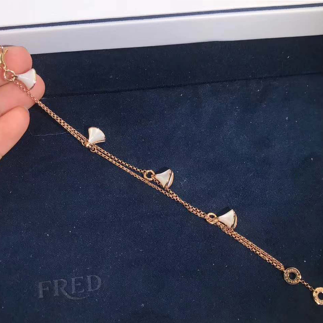 Inspired by feminine elegance and by the enchanting allure of the eternal city, the DIVAS' DREAM bracelet pays homage to the most glamorous divas with an unmistakable Roman spirit. Quintessentially feminine and refined, the bracelet is sculpted capturing the magnificence of the Caracalla Baths marble and the sensual curves of its fan-shaped mosaics, reflecting the very essence of Italian beauty.