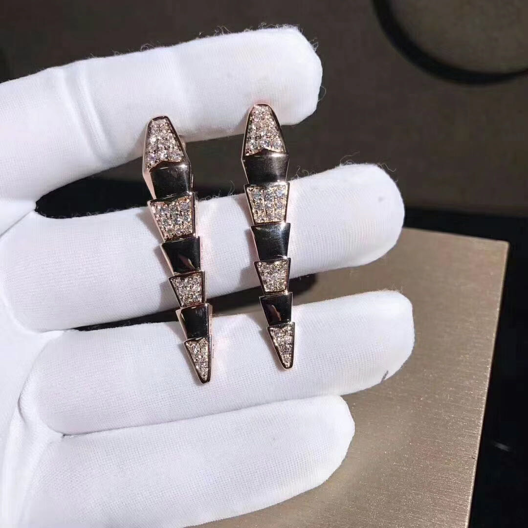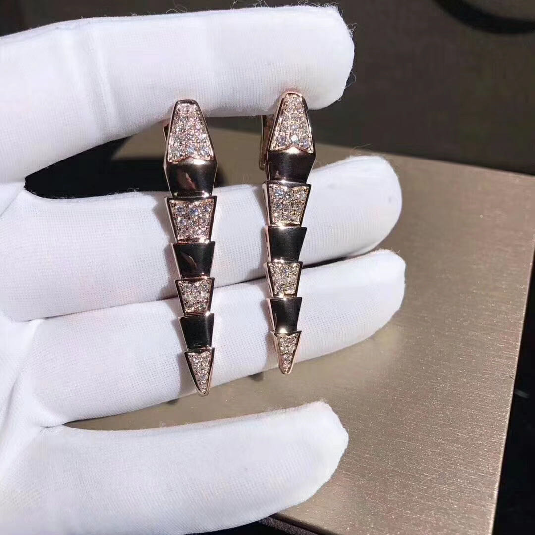 Bvlgari Serpenti Earrings in 18 kt rose gold, set with pavé diamonds.