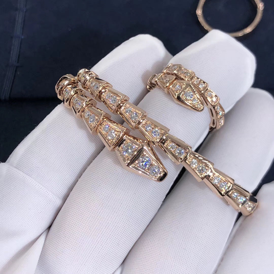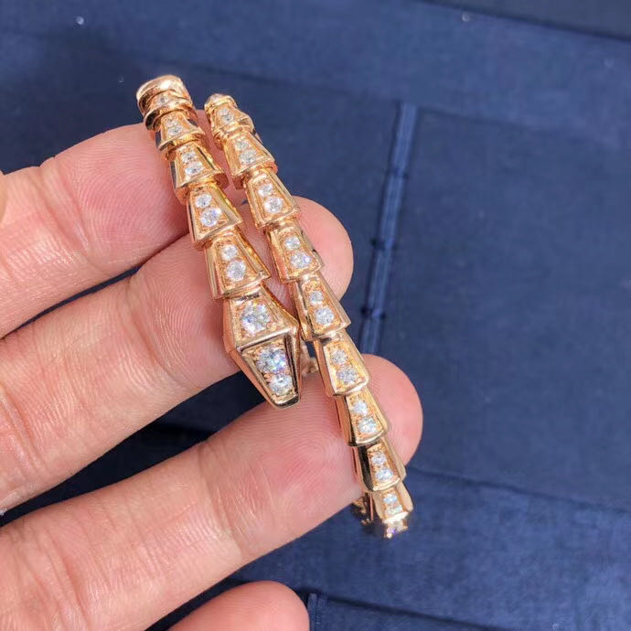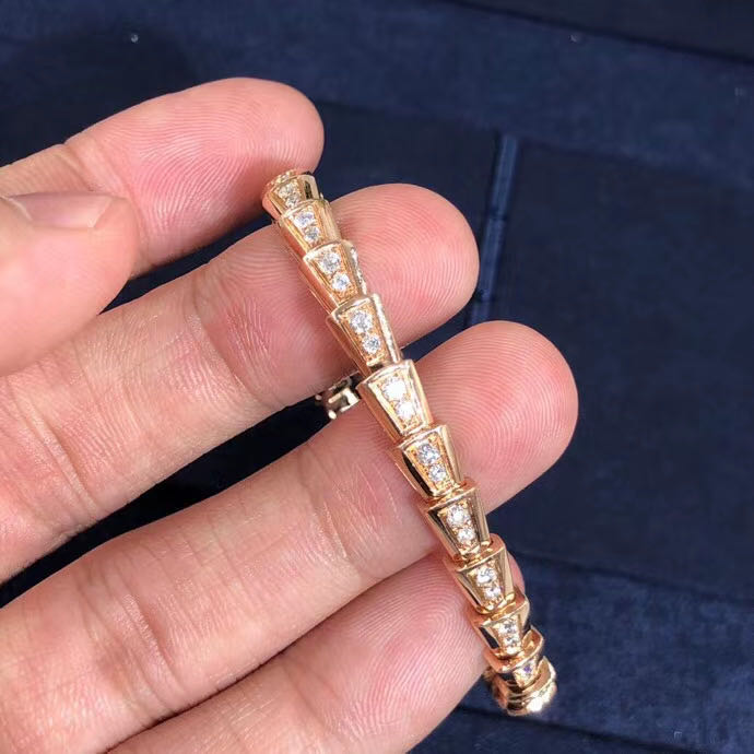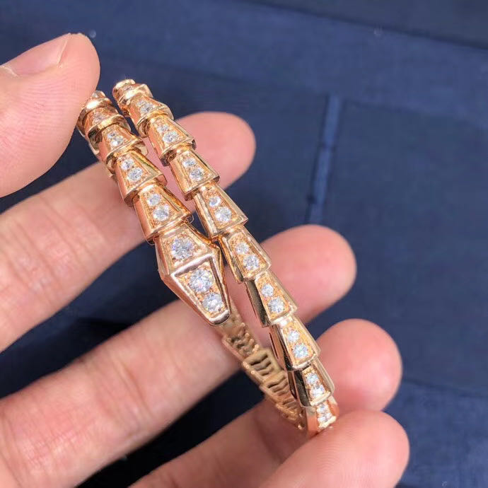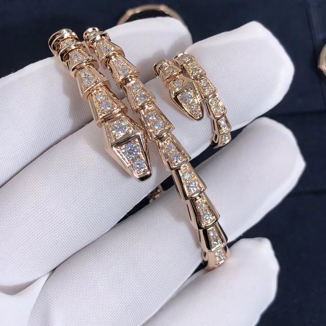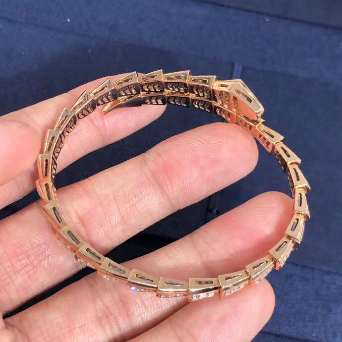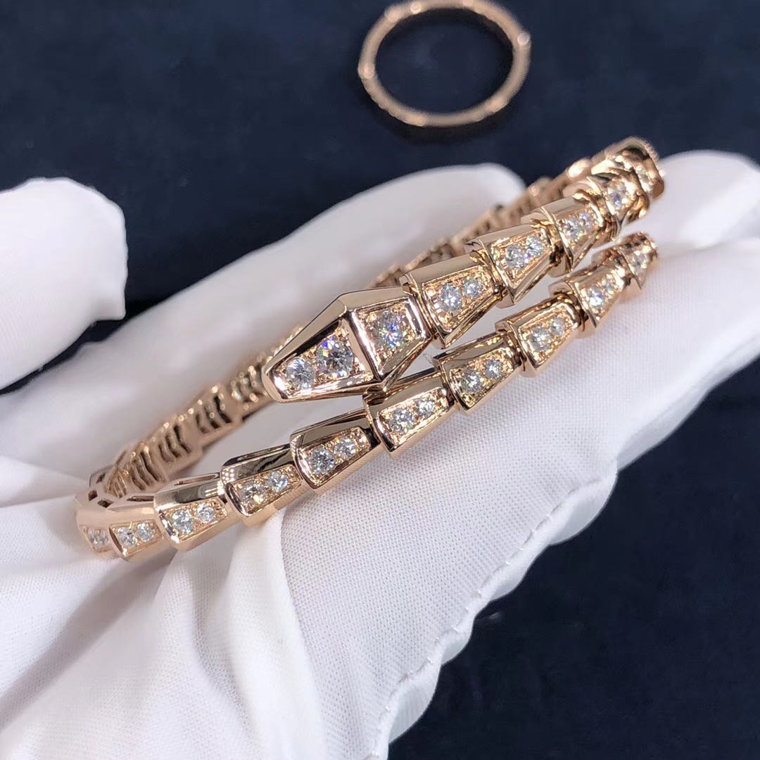 • Bvlgari Serpenti one-coil slim bracelet in 18kt rose gold with full pavé diamonds