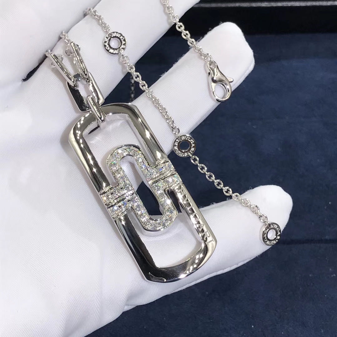 » Bvlgari Jewelry » Custom Made Bvlgari Parentesi Necklace 18K White Gold Half Diamond L Size Pendant