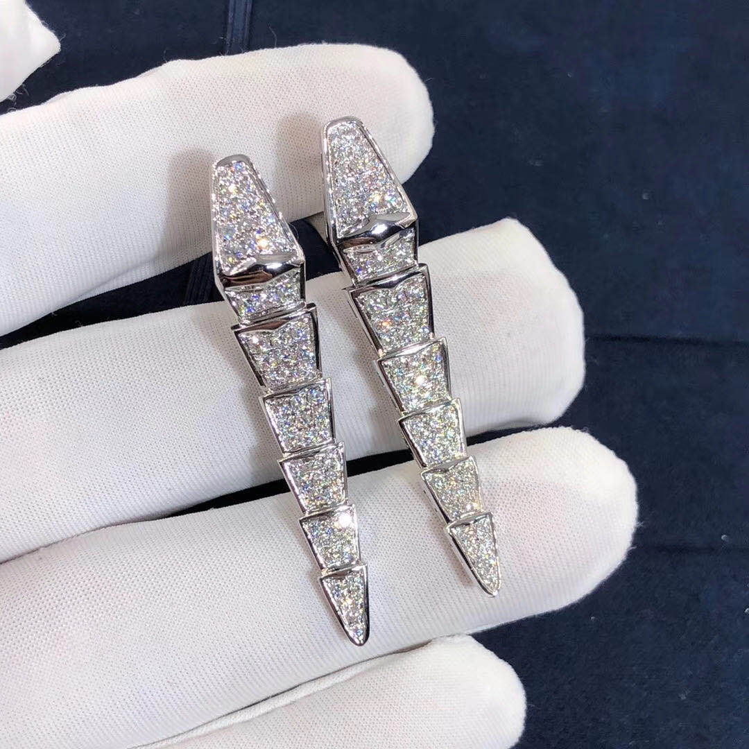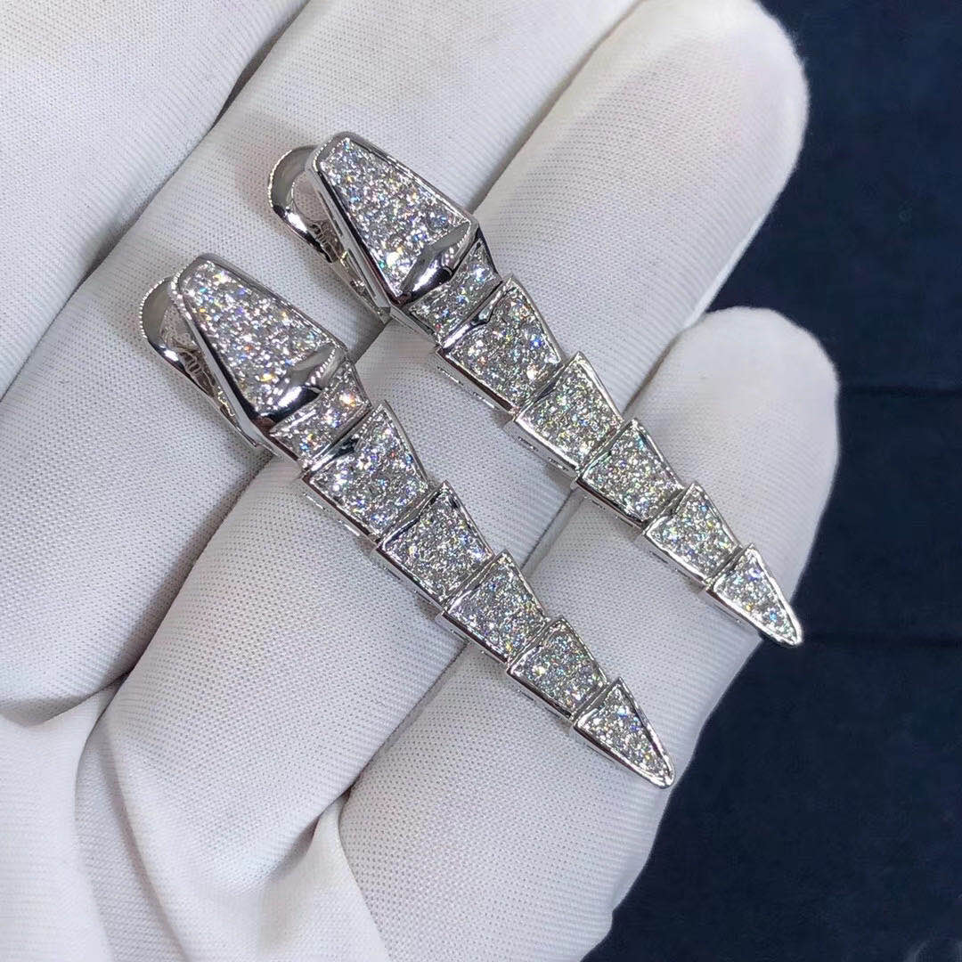Inspired Bvlgari Serpenti earrings in 18kt white gold set with full pave diamonds