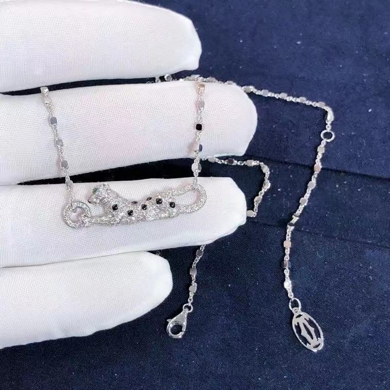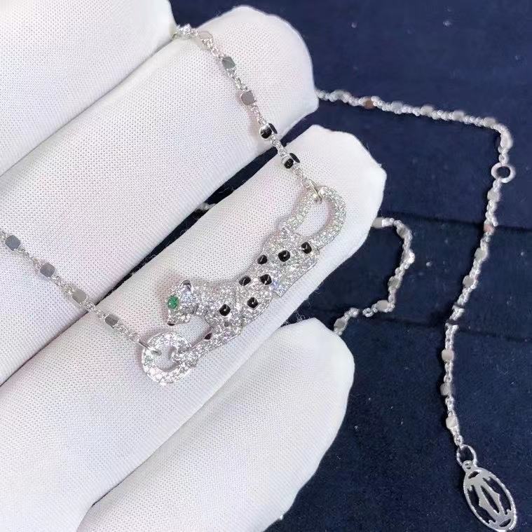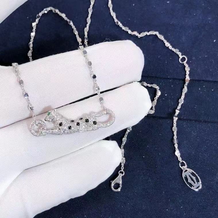 Panthère de Cartier necklace, 18K white gold, black lacquer, set with one tsavorite garnet and 19 brilliant-cut diamonds totalling 0.07 carats.