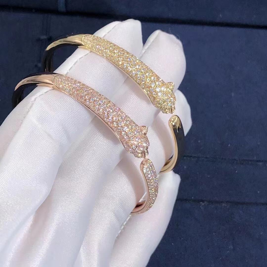 Panthère de Cartier bracelet, 18K pink gold, onyx, set with 2 tsavorite garnets.
