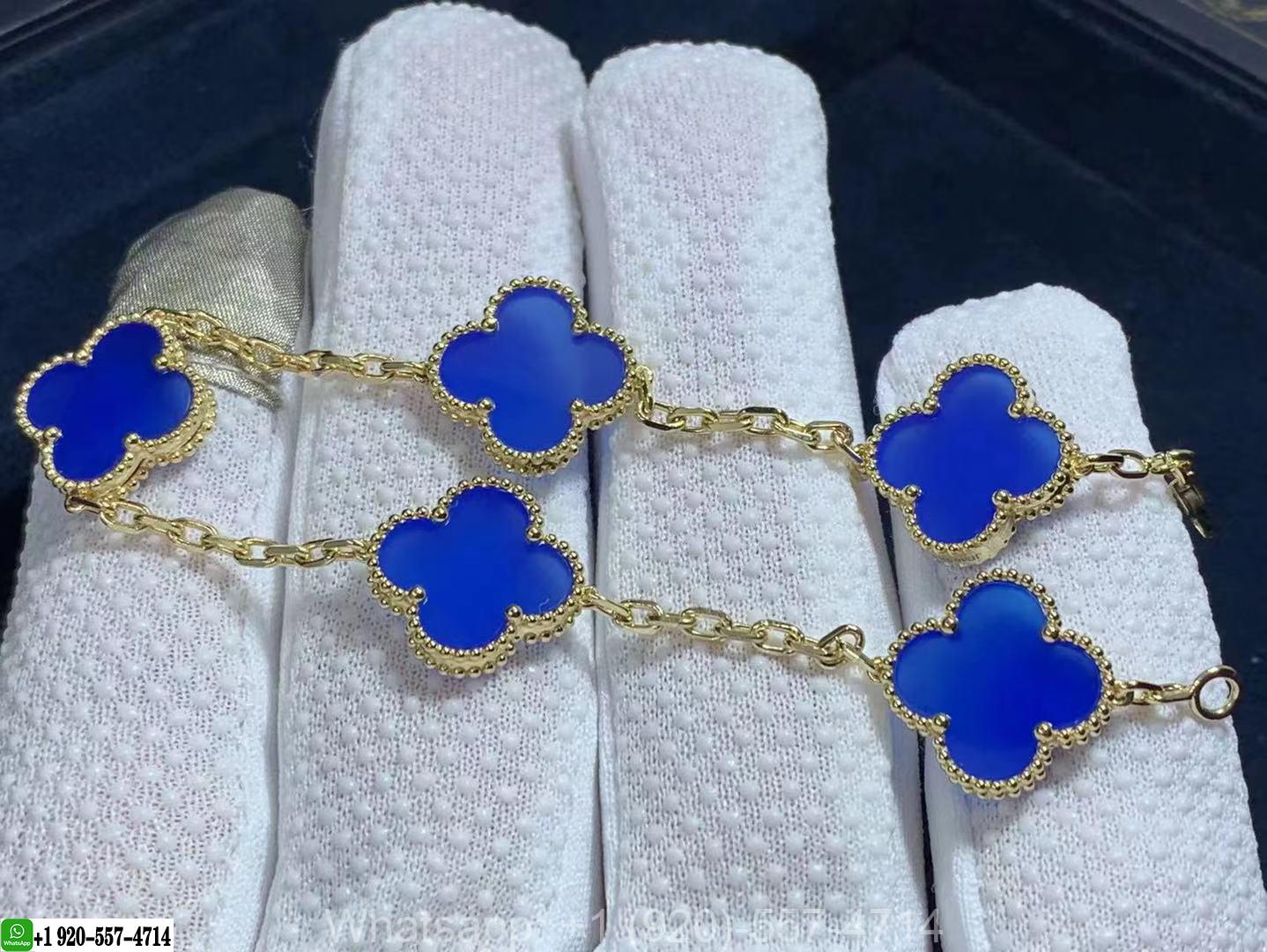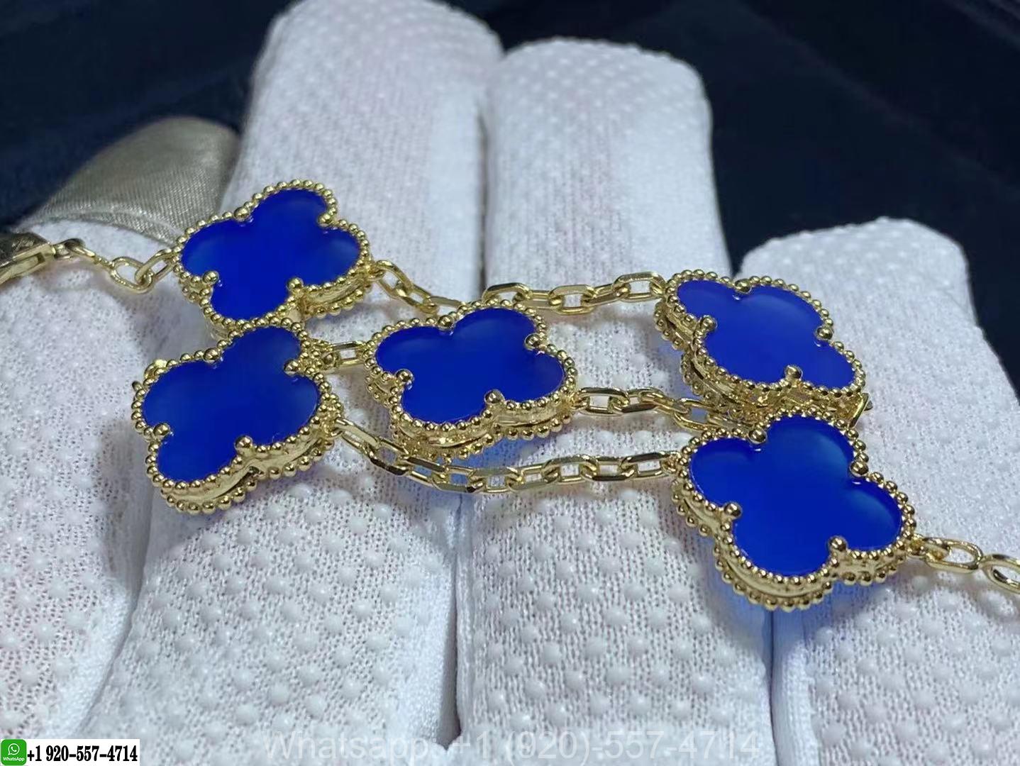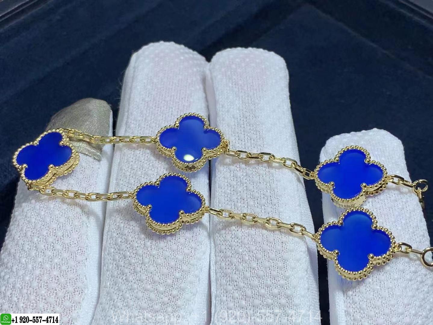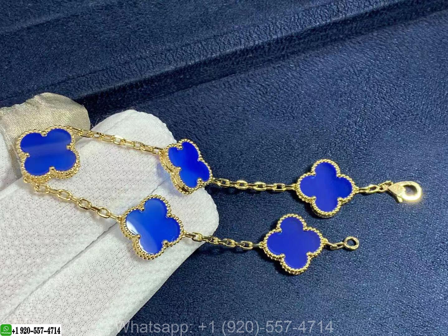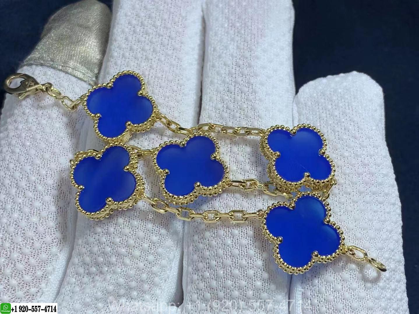 Vintage Alhambra bracelet, 5 motifs, yellow gold, Lapis Lazuli.