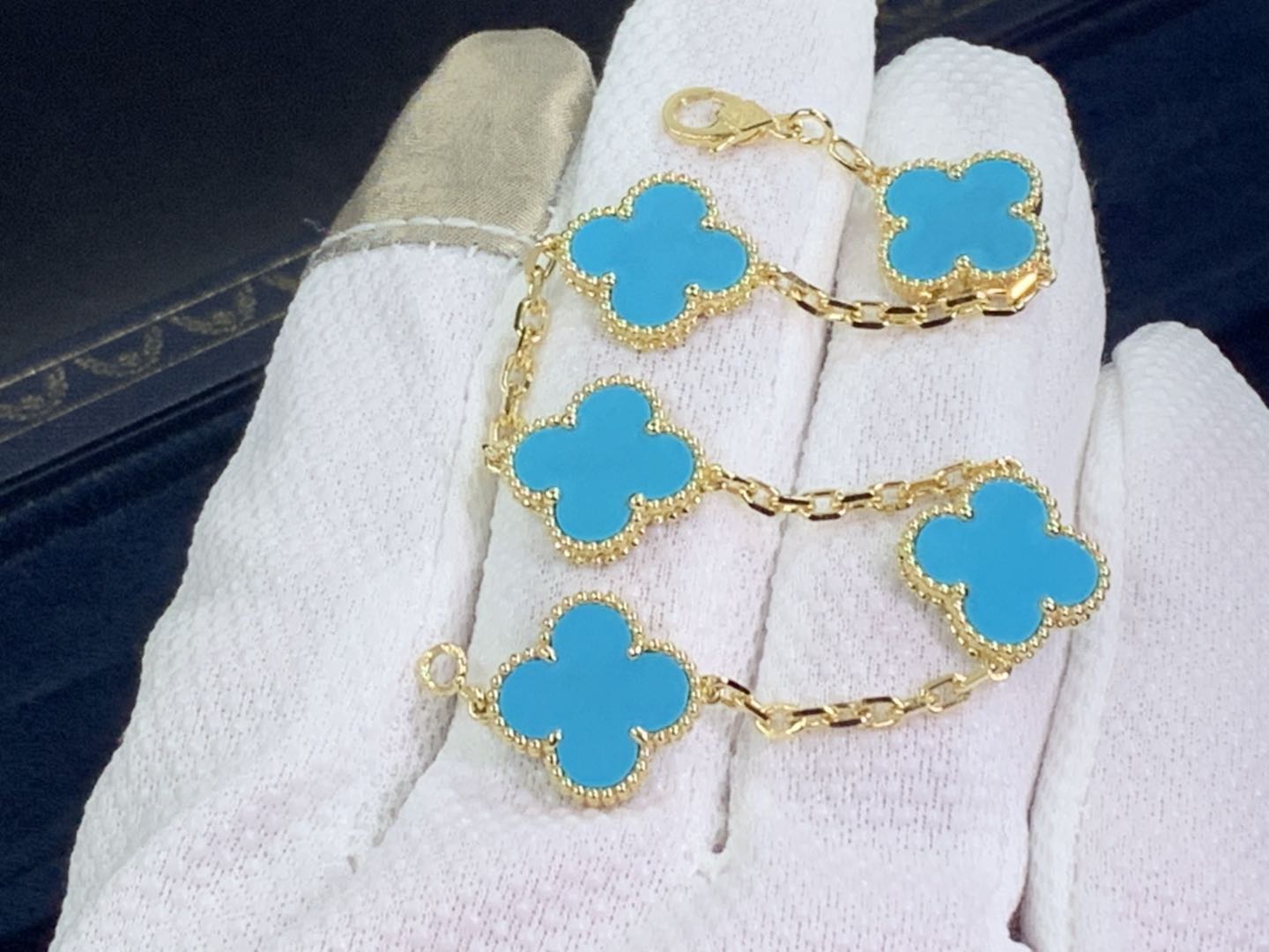 Vintage Alhambra bracelet, 5 motifs, yellow gold, turquoise.