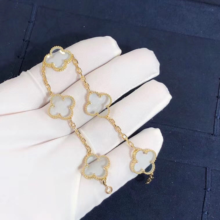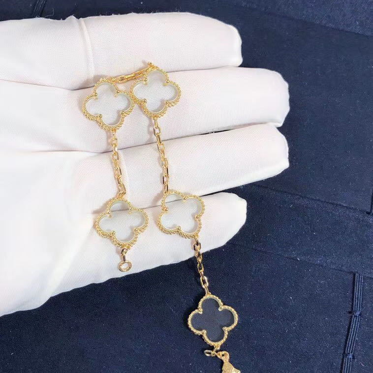 We are professional in custom-made real 18k gold jewelry for 10 years. We have more than 5000+ customers. You will get a wholesale price with High quality Van Cleef & Arpels jewelry, like Van Cleef & Arpels 18K Yellow Gold Vintage Alhambra Rock Crystal 5 Motifs Bracelet customized product. Also, we have professional after-sale services to support 7*24 hours of service. Wherever you are, the jewelry can be delivered via DHL, includes free gift box.