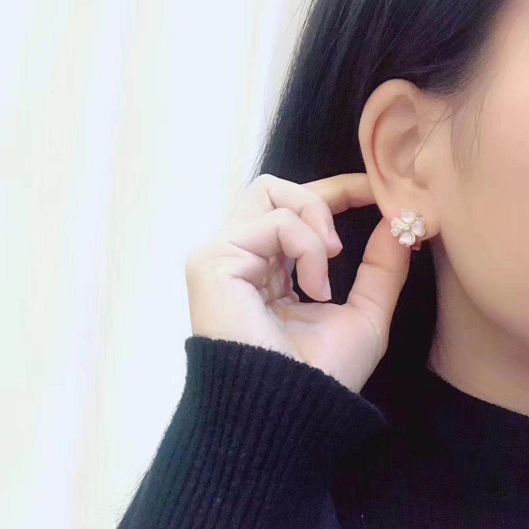 Van Cleef & Arpels Cosmos earrings in rose gold with brilliant-cut diamond buds surrounded by white mother-of-pearl and diamond petals. Each designed as four heart-shaped petals set with mother-of-pearl and diamonds.