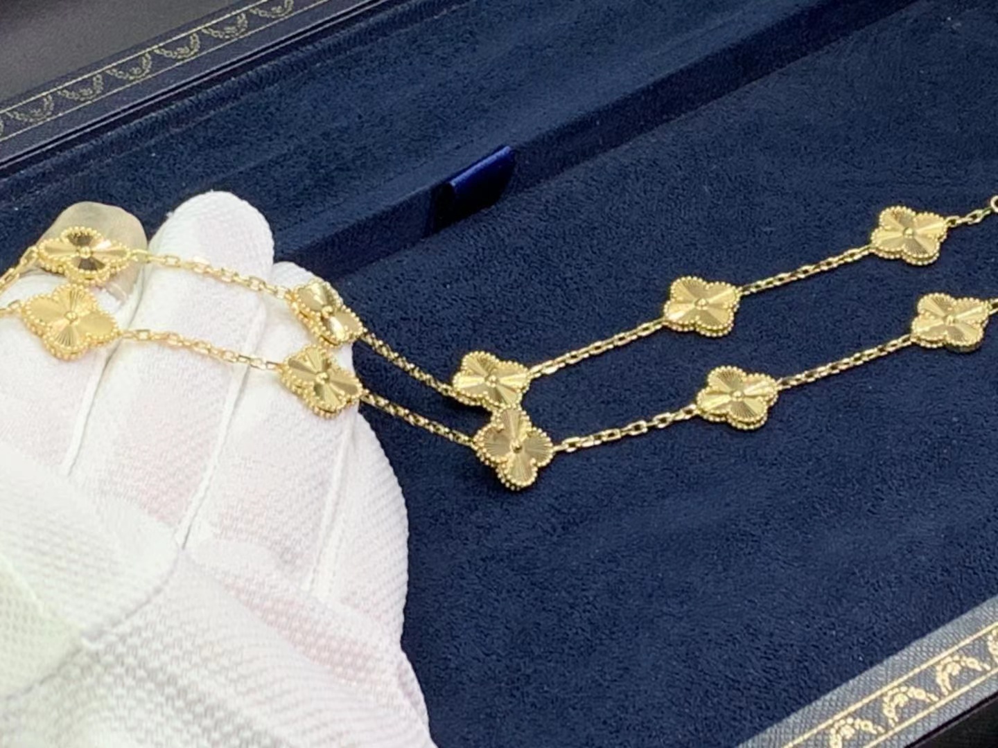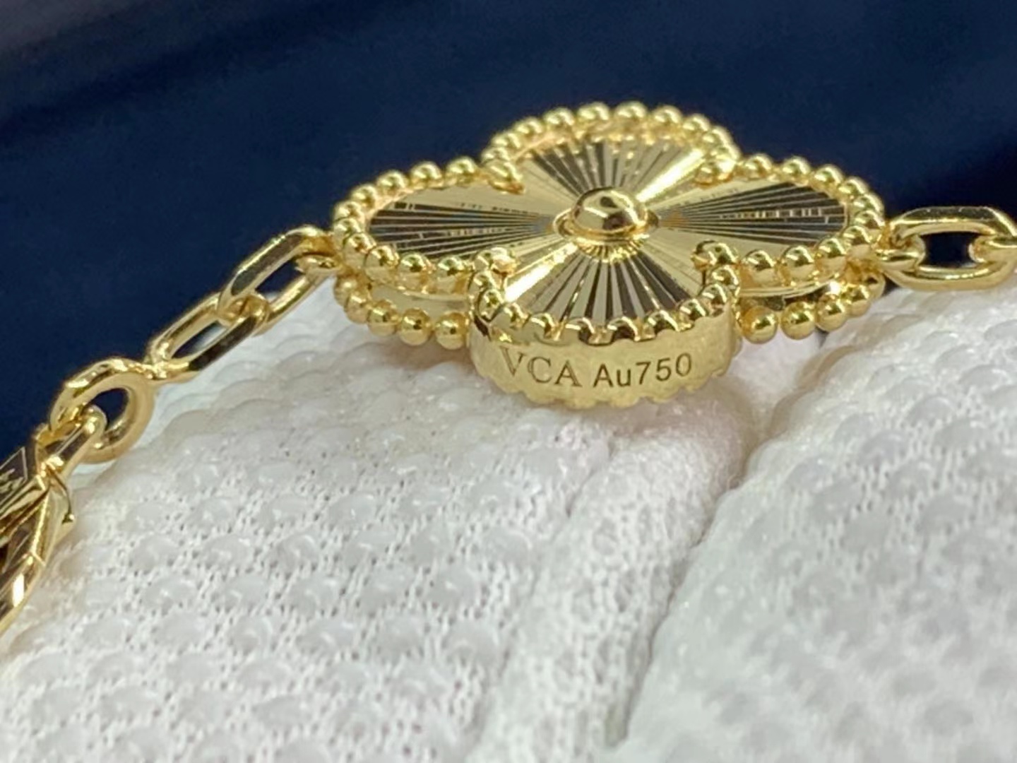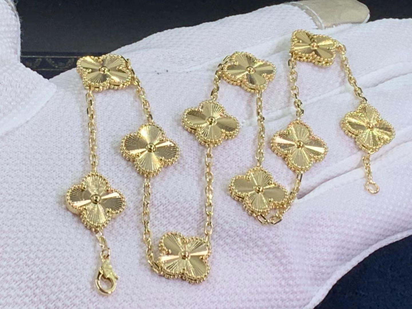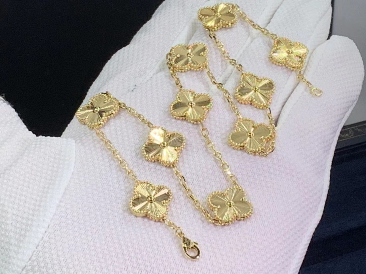 The Vintage Alhambra creations by Van Cleef & Arpels are distinguished by their unique, timeless elegance. Inspired by the clover leaf, these icons of luck are adorned with a border of golden beads.